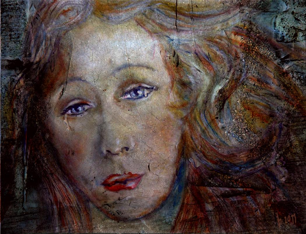 ... galt um 1450 als schönste Frau von Florenz und inspirierte in der italienischen Renaissance auch Sandro Botticelli zu seinem berümten Werk "Die Geburt der Venus". (Sie wissen...die mit der Muschel :) Ich dachte mir, wie würde sie wohl heute, unter zeitgemäßen Umständen, als Teenie aussehen. Das hat sie aber traurig gestimmt. Encaustic/ Pen auf Kunstoffplatte anschl. digital überarbeitet. Unter Encaustic painting versteht man die Wiederentdeckung einer 5000 Jahre alten ägyptischen Wachsmalkunst und die Wandlung zu einer neuen kreativen Form der Malerei. Das Wachs wird heute bei dieser modernen Methode der Encaustic-Malerei u.a. auf die Bodenfläche eines bügeleisenähnlichen Gerätes oder mit Heissluft aufgeschmolzen und auf die Malfläche verstrichen. weitere Präsentationen bei: www.encaustic-gallery.de www.redbubble.com/people/frithjof www.wix.com/frithjofs/artMerkmale