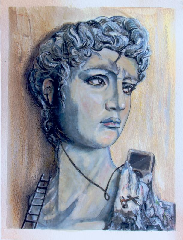 David - Version 2.0 (Hey Golie, You can choose between "STONES" or "The Beatles"!) Encaustic /Aquacolor/Ink Painting Substrait: Paper 24x36 Medium: wax, ink Encautic Tools: Hot air gun, spatula, stylos, iron ©2013 Frithjof www.encaustic-gallery.de Unter Encaustic painting versteht man die Wiederentdeckung einer 5000 Jahre alten ägyptischen Wachsmalkunst und die Wandlung zu einer neuen kreativen Form der Malerei. Das Wachs wird heute bei dieser modernen Methode der Encaustic-Malerei u.a. auf die Bodenfläche eines bügeleisenähnlichen Gerätes oder mit Heissluft aufgeschmolzen und auf die Malfläche verstrichen. weitere Präsentationen bei: www.encaustic-gallery.de www.kunstgalerie.ws/3088/ www.redbubble.com/people/frithjof www.wix.com/frithjofs/artMerkmale